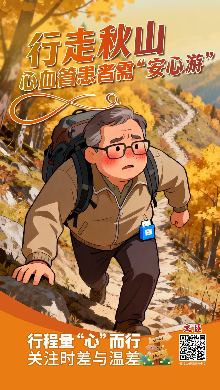 秋高气爽,正是出游好时节。对心血管病患者而言,旅行中诸多因素可能给心脏带来额外负担。无论行走于何处秋山,内心安稳是根本。一份心血管患者“安心游”攻略送给读者朋友。