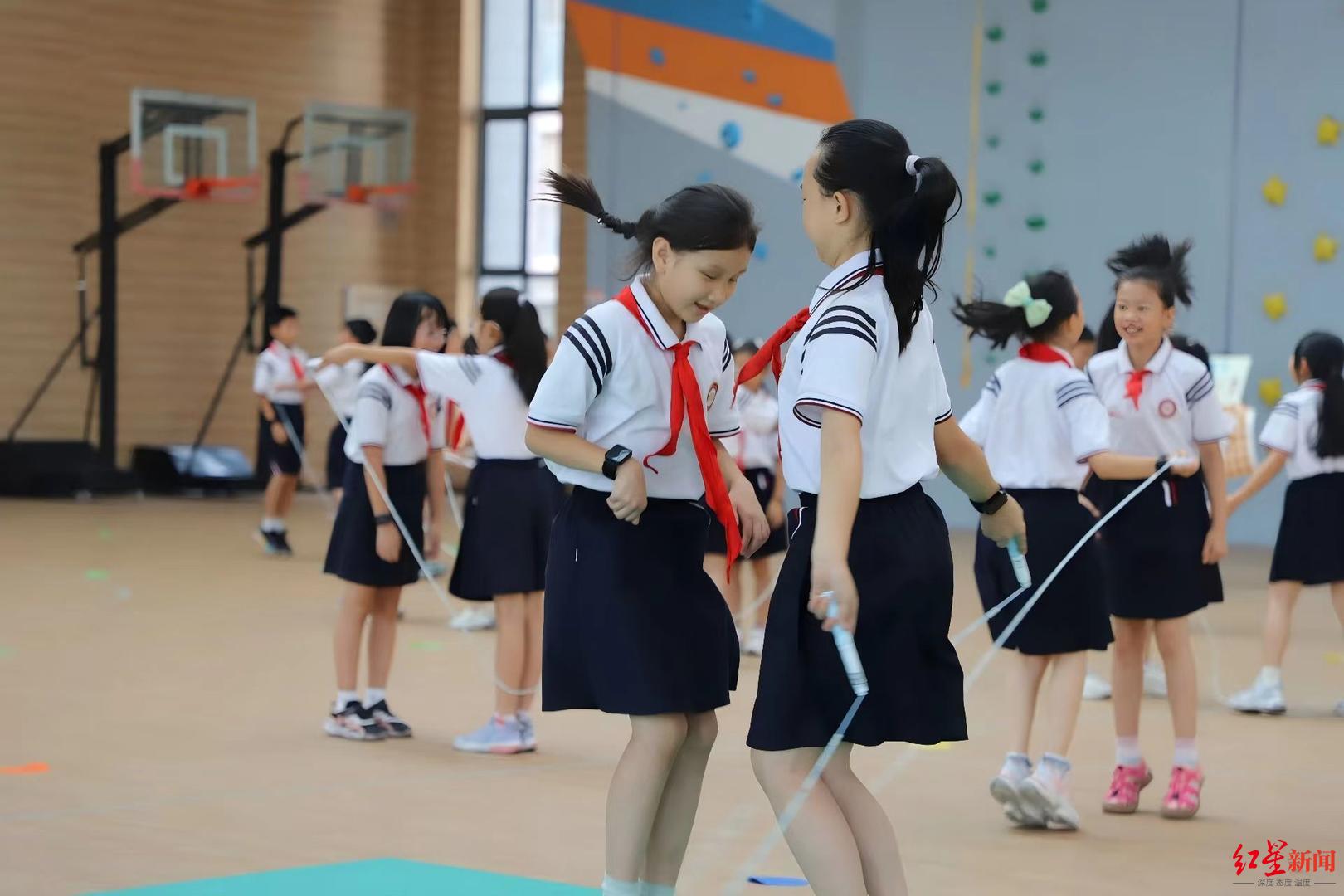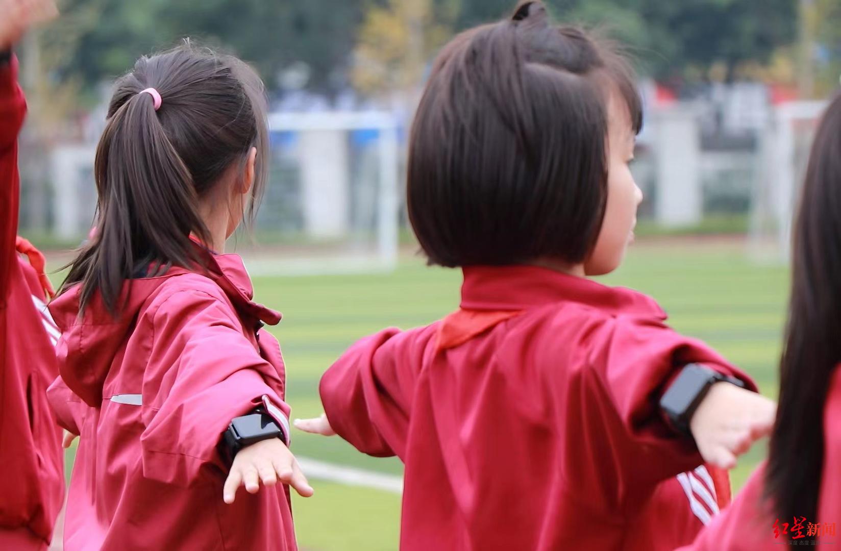 在成都市双流区棠湖中学实验学校(东区),学生佩戴智能手表进行体育训练